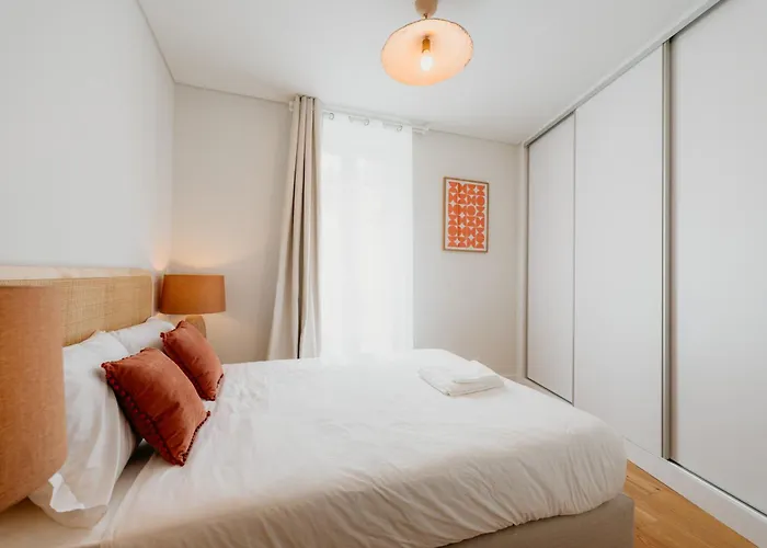 Lisbon Orange House - Elegant Two-Bedroom Apartment 1E, som ligger cirka 19 minuters promenad från LxFactory, erbjuder tillgång till många sevärdheter i närheten.